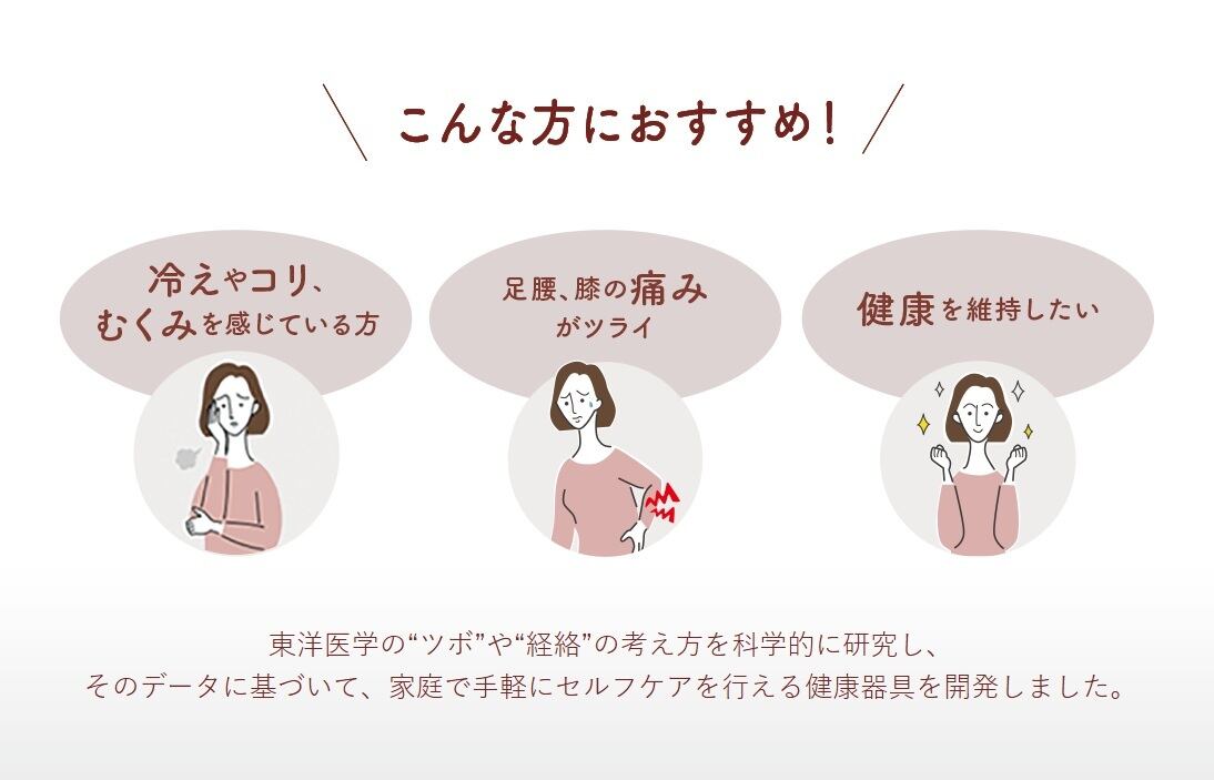 そのデータに基づいて、家庭で手軽にセルフケアを行える健康器具を開発しました。